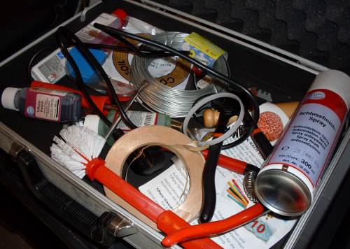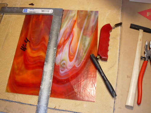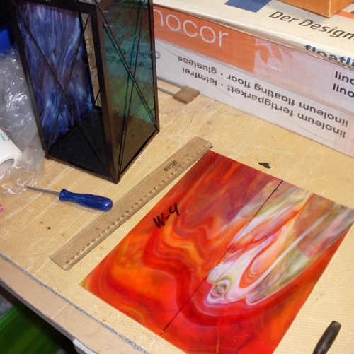 Vor einiger Zeit habe ich mir dazu bunte Gläser besorgt. Und mit einiger Unterstützung von wirklichen Könnern, das zugelegt, was man als Mindestausstattung braucht: Glaskröselzange, Kupferband, Schutzbrille, Winkeleisen, tonnenweise Lötzinn undsoweiter undsofort: