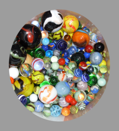 Da ich in Stuttgart arbeite, hatte ich das Glück, in einem Kinderspielzeugladen wunderschöne Glasmurmeln erwerben zu können. Die üblichen Glasmurmeln, wie ich sie aus meiner Kindheit gekannt habe, und von denen ich mir zuvor ein Säckchen voll gekauft hatte, nehmen sich dagegen beinahe "hässlich" aus: